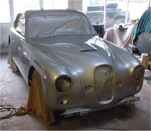 | Farina Jupiter E1 SA 109R is getting its top coat of paint, courtesy Pat Lockyer, the car's owner-restorer. | Mid to late January 2003 - Getting there...but lots of rubbing down still to do! |